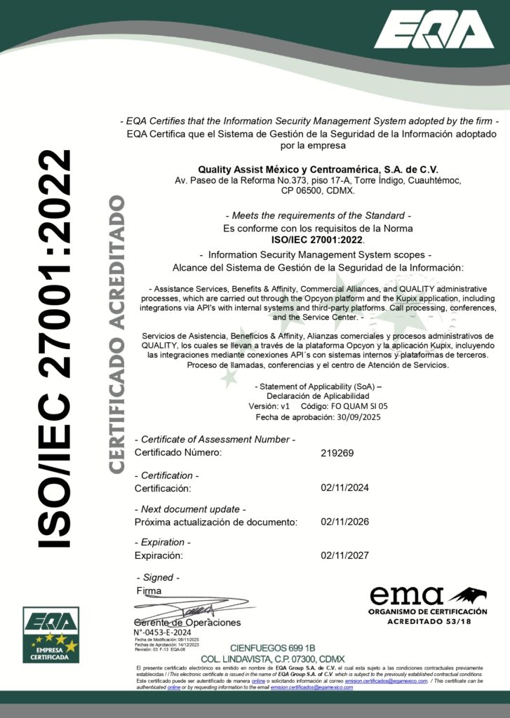 Con Quality Assist, tu información está en buenas manos.