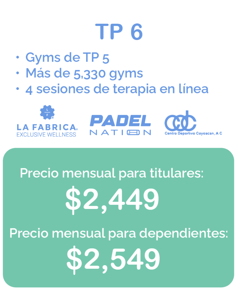 Conoce tu nuevo beneficio con TP que te abre las puertas a más de 5,000 centros deportivos, spas, estudios y plataformas online, todo desde una sola app. Disfruta de bienestar sin límites: sin inscripción, sin anualidad y sin compromisos forzosos.